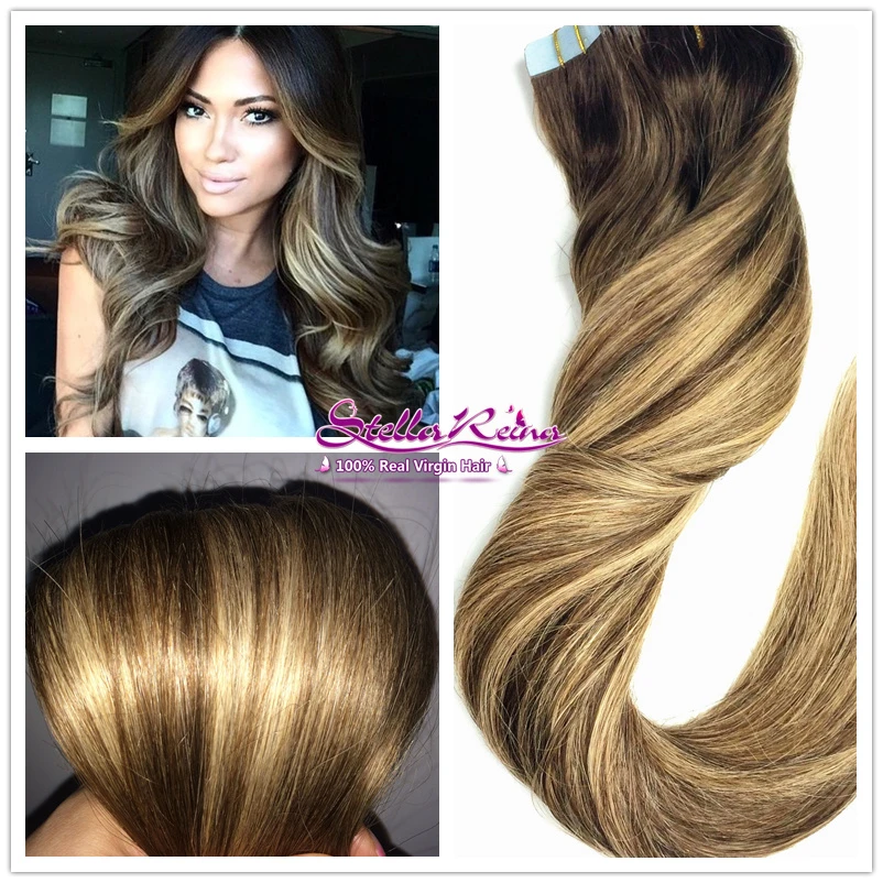 Ombre Balayage Highlights Blonde Brazilian Straight Hair Color 4 To 4 27 Tape In Pu Skin Weft Remy Hair Extension 20 40 Pcs Hair Color Tape Inhair Hair Aliexpress